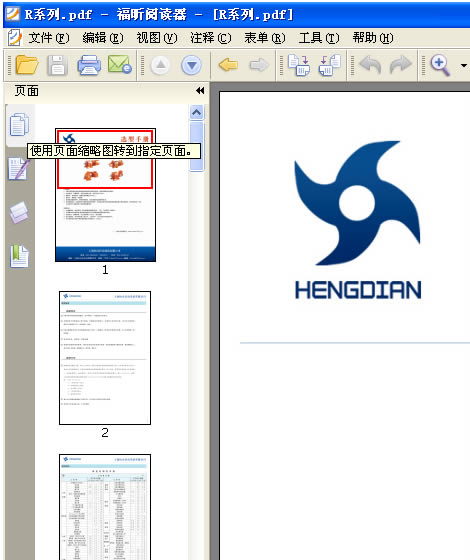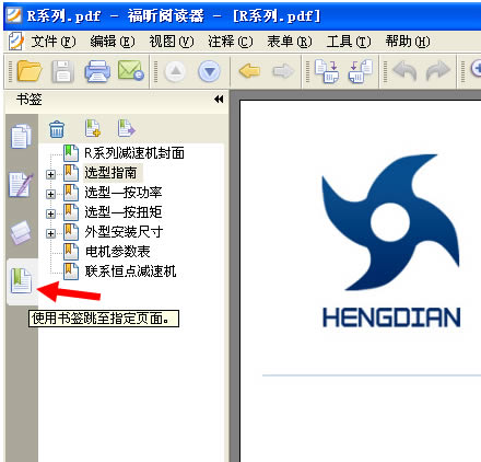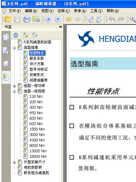 4: 打開一個PDF文件後 ,本例以打開 恒點傳動公司的R系列産品爲示範,看下軟件的左上角,如下圖: