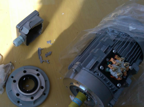 快遞一台電機,到公司後 ,居然發現電機接線盒直接破損!