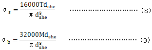 軸的名義應力按以下公式計算。公式(6)與公式(7)可應用於薄壁軸的設計,這裏比值dshi/dshe<0.9是不允許的。