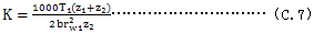 fm——在一定的齧合油溫條件下的齧合磨擦因數。假如節線速度 v爲2m/s<v<25m/s和K值爲1.4N/mm2<K<14N/mm2時,則fm可用公式(C.6)來計算。超過此範圍時,齧合磨擦因數應用實驗方法確定。