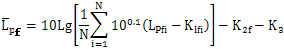 LPfi——第i測點的頻帶聲壓級,dB;