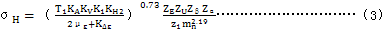 5.1.3雙圓弧齒輪齒面接觸應力σH按式(3)計算: