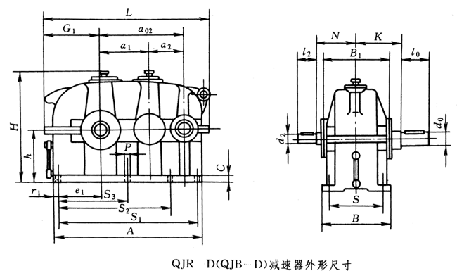 QJ-D型起重機底座式減速器外形安裝尺寸(JB/T8905.2-1999)