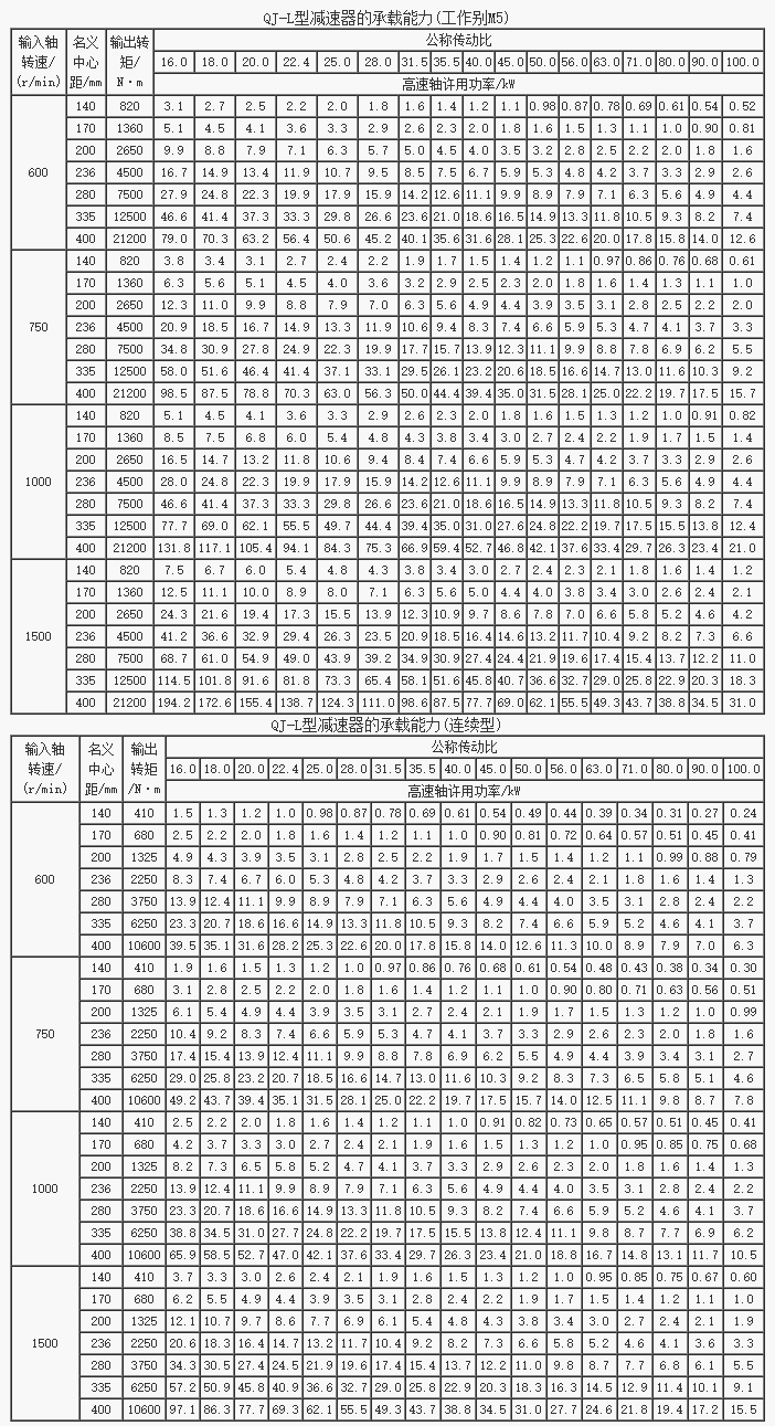 QJ-L型起重機立式減速器承載能力(JB/T8905.3-1999)