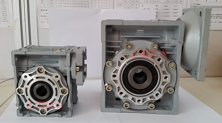 RV40與RV63配伺服電機方法蘭實物照片對比,速比不同,但不影響安裝尺寸.對比可以看出,同一系列,機座不一樣,伺服電機功率不一樣,外形尺寸還是有一定的出入. 附圖: