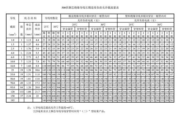 從左到右依次是:電線的截面積、線芯結構、導線的明敷時環境溫度、橡皮絕緣導線穿管敷設和塑料導線穿管敷設的項目名稱(chēng) ,隻要我們以造表格查詢就可以相應找到所需參(cān)數 。不過這個隻是我們作爲參(cān)考的表 ,幹事情也不能夠始終照搬硬套,因爲這個表是理想狀态下的,實驗室數據,在實際工作中我們還要考慮電線的機械強度等因素,實際上都是比這個表上大一個到兩個等級的。
