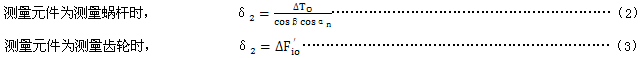 測量元件爲測量蝸杆時,δ5按公式(6)、(7)(8)計算。
