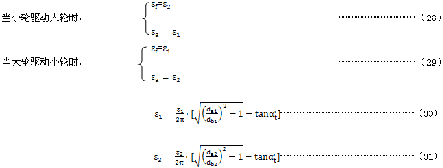 重合度系數Kε是考慮在忽略載荷分配時,将小輪齒頂的閃溫值轉換爲沿齧合線閃溫平均值的系數 。重合度系數可以用齒高重合度ε1與ε2以及它們的和εa來表示。Xε的公式是基於假定沿齧合線的閃溫是線性分布的。這種方法的可能誤差将不會超過5%,且偏於安全。