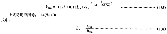 對於齒形角αn爲20°的齒傳輸線,YSa可按式(155)計算。對於其他齒形角的齒輪 ,可按此式近似計算YSa