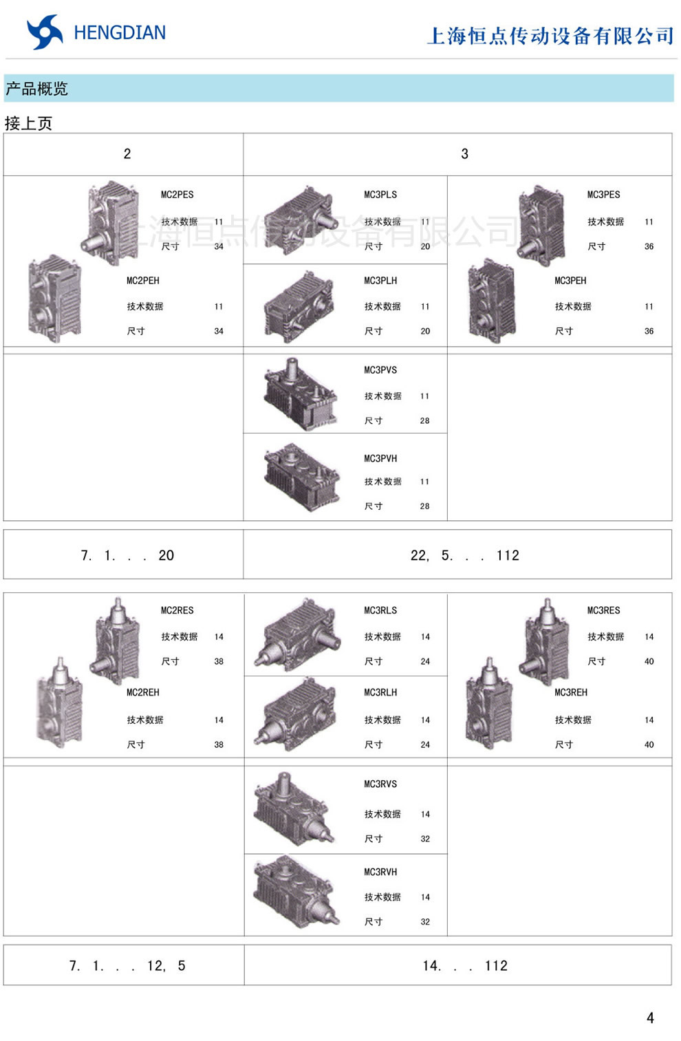 9 - 傳動能力和外型安裝尺寸/斜齒豎立安裝 10 - 傳動能力和外型安裝尺寸/錐齒-斜齒水平安裝