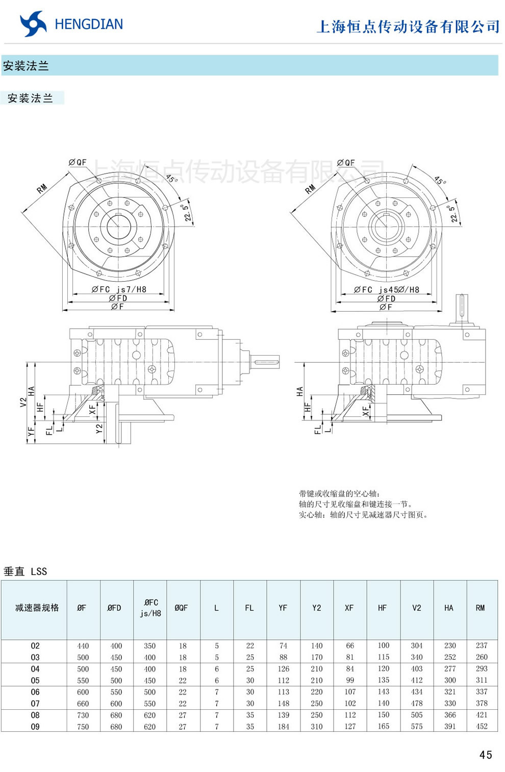 7 - 傳動能力和外型安裝尺寸/斜齒水平安裝 8 - 傳動能力和外型安裝尺寸/斜齒垂直安裝